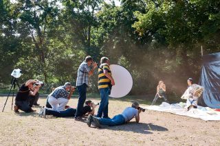 Heute war es soweit. Strahlender Sonnenschein begrüßte unsere Gäste – Models und Fotografen. Nach einer kurzen Einstimmung mit einem Gläschen Sekt wurden sofort die Outfits der Models designed. So entstanden Kleider, Hosen, Hochzeitsoutfits – auch ein Gladiator war nun anwesend sowie ein Kleid aus den 50ern. Mit Lollies, Fächern, Luftballons und Seifenblasen entstanden schon sehr beeindruckende Portraits.