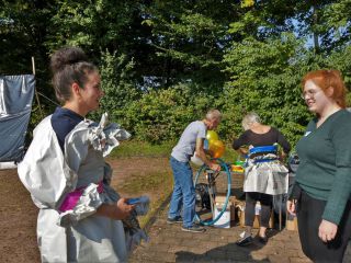 Nach einer Mittagspause, die Fotofreunde hatten zur Stärkung Backwaren, Brotaufstriche und Getränke bereitgestellt, ging es mit dem Highlight weiter: das Holishooting mit Farbpulver. Nach und nach konnte jedes Model seine Portion Farbe „abholen“ – eine Herausforderung! Es sind tolle Bilder entstanden, freche, süße, kämpferische, bewegte…